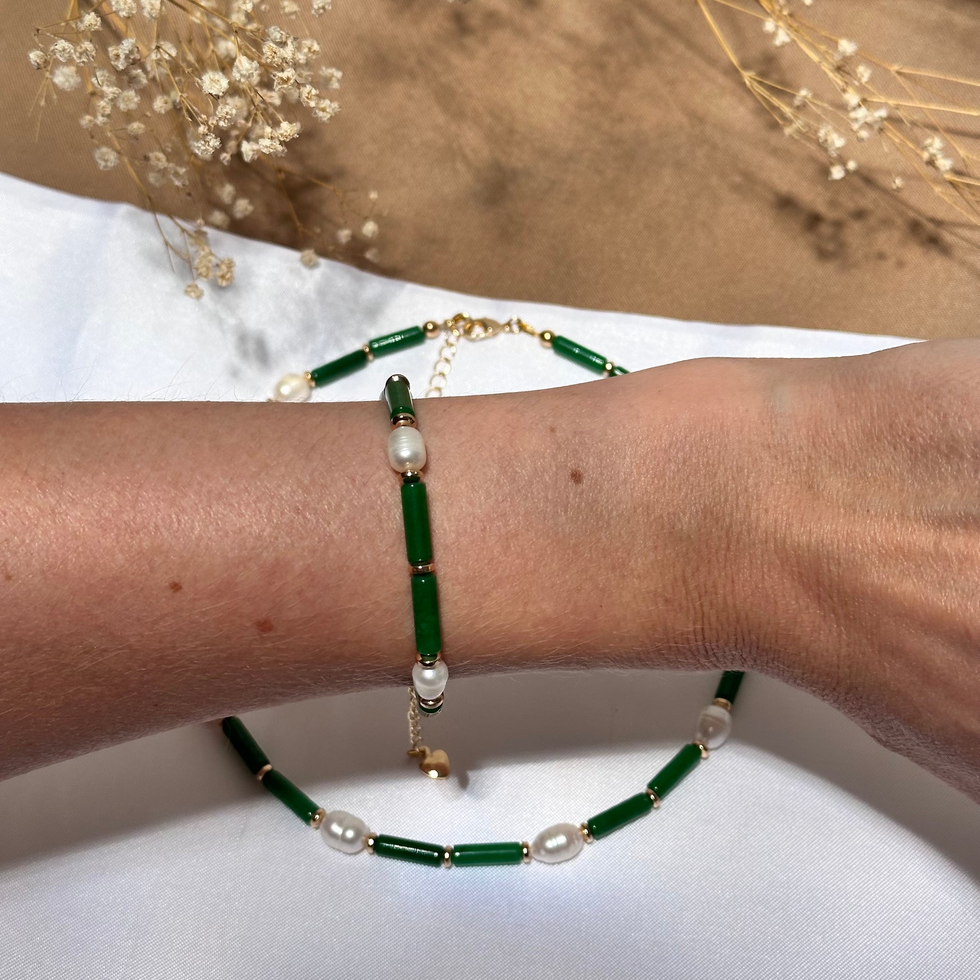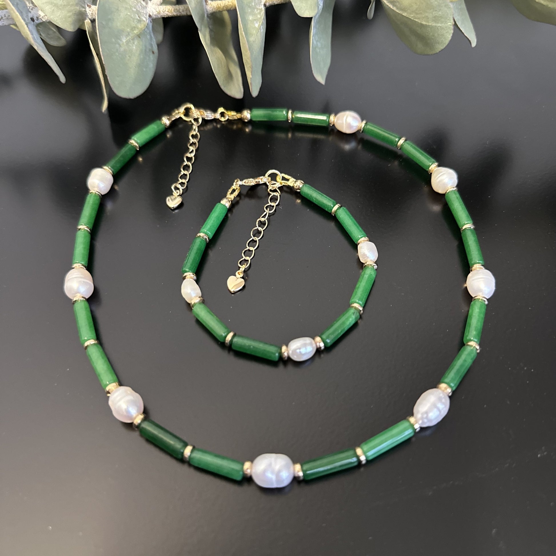 - Tubos de agata verde de alta calidad con perlas de rio